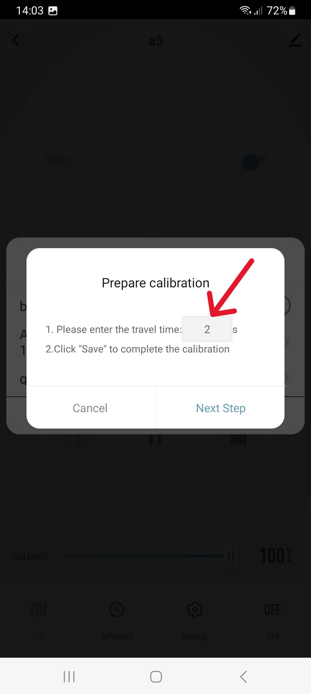 Sau khi thêm thiết bị vào ứng dụng thành công. Tiến hành cài đặt thời gian hành trình của cửa cuốn.